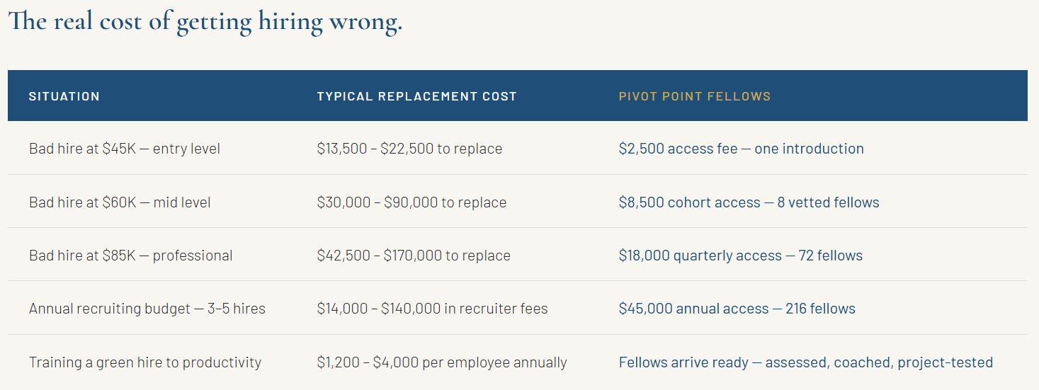 If you are looking for someone to follow instructions quietly and never push back, Pivot Point Fellows is not the right pipeline for you. If you are looking for someone who will show up prepared, engaged, and ready to grow with your organization — we should talk.